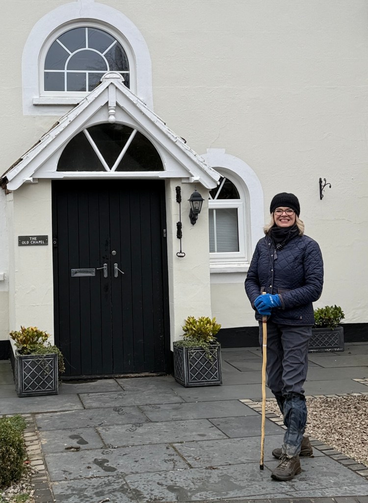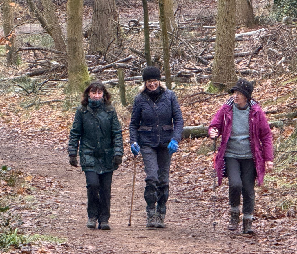 BRC Hail Weston Sun 21 Sep 2025 Leader: Karen [Photo of Annie – smiling]Beds Walking Festival Sept 2025 – two Rambling Groups meeting at Willington (by chance). Photo by …….Sun 12 Jan 2025 walking thru’ Aspley Woods The Old Chapel – now a house in Aspley Guise 12 Jan 2025Group of three ladies walking together on a forest trail during winter, enjoying a leisurely hike.